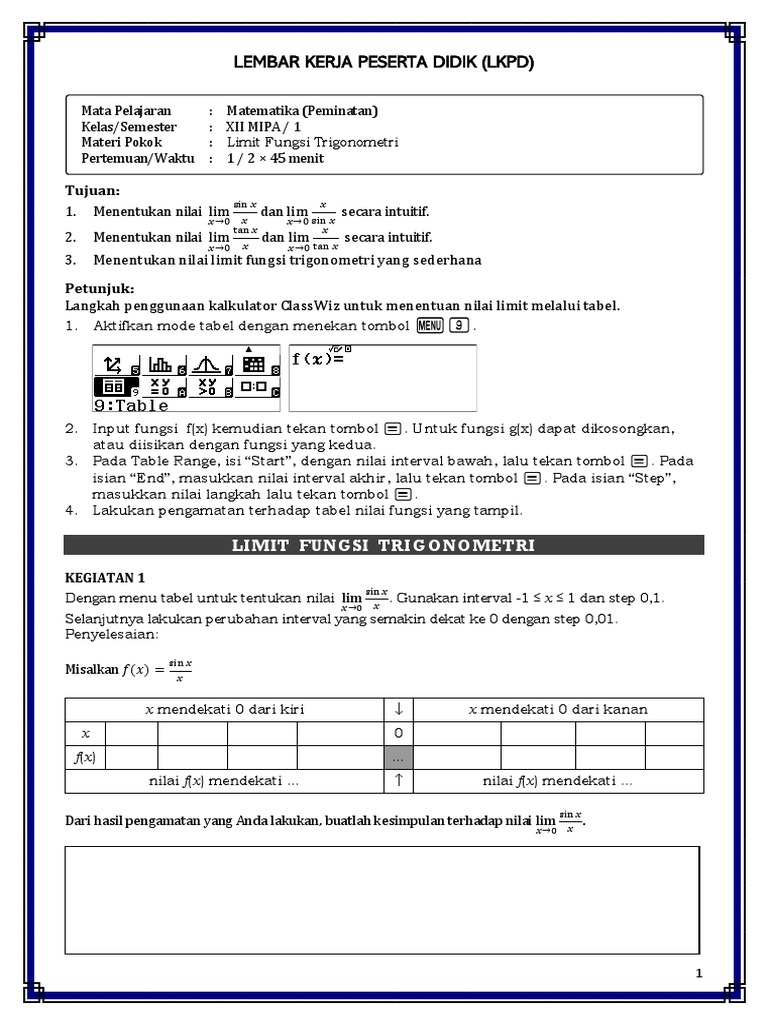 Berikut kompetensi dasar matematika peminatan sma/ma kelas 10, 11, 12 yang menjadi acuan dalam penyusunan rpp kurikulum 2013 revisi 2016 dan revisi 2017. Pada kesempatan ini m4th lab akan membahas materi limit fungsi trigonometri meliputi konsep contoh soal dan pembahasan. Di sini kami sediakan materi untuk pelajaran matematika peminatan sma kelas x kurikulum 2013 revisi 2018. Limit bentuk 1 limit fungsi trigonometri. Cara pertama dengan rumus yang ada diatas, sehingga langsung didapatkan: Pada kurikulum 2013 revisi 2016 materi ini dipelajari di kelas xii matematika. Semua video materi di bawah ini didesain dengan runut dan terstruktur. Contoh soal dan pembahasan tentang limit trigonometri. Pada kurikulum 2013 revisi 2018/2019, bahan ini dipelajari di kelas xii matematika peminatan semester ganjil. 3.1 menjelaskan dan menentukan limit fungsi trigonometri Oleh dosenpendidikan diposting pada 21/06/2021. Pada kurikulum 2013 revisi 2016 materi ini dipelajari di kelas xii matematika peminatan semester ganjil. Matematika peminatan kelas xii, turunan fungsi trigonometri 10 contoh soal dan pembahasan 9:03 contoh 1 10:10 contoh 2.