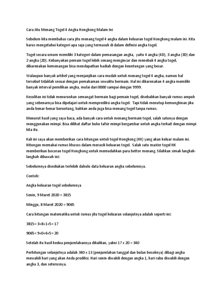 Rumus Jitu Togel Hongkong 4 Angka from www.worldnews.easybranches.com Maybe you would like to learn more about one of these? Check spelling or type a new query. We did not find results for: