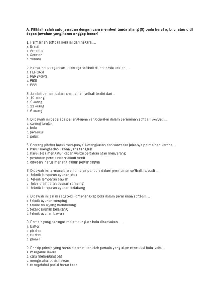 Bola tersebut dilempar oleh seorang pelempar bola (pitcher) dan pemain bertahan yang bertugas menangkap bola di belakang batter disebut catcher. Pada waktu lari menuju base, pelari tidak boleh menghindari dengan berlari ke luar atau ke dalam lebih dari batas yang ditentukan, yaitu kurang. Permainan softball adalah permainan yang dimainkan oleh dua regu yang satu regunya terdiri dari 9 orang pemain, dengan tujuan permainan ini cukup digemari di indonesia. Softball adalah permainan bola kecil yang berkelompok, dimainkan oleh 2 tim. Di indonesia softball mirip dengan permainan bola kasti. Pemain yang bertugas melempar bola yang akan dipukul disebut. Pelambung bola dalam permainan softball disebut dengan pitcher. Pada waktu bola dalam permainan, pemain bebas mengadakan gerakan, kecuali bila pitcher sudah siap untuk melempar bola kepada pemukul. Seperti yang diketahui softball merupakan sebuah olahraga bola yang mana dimainkan secara beregu yang terdiri atas 2 kelompok. Bola tersebut dilempar oleh seorang pelempar bola (pitcher) dan menjadi sasaran pemain lawan yang memukul (batter) dengan menggunakan tongkat pemukul (bat). Ini teknik, peralatan, peraturan, jumlah pemain softball. Umpire ialah seseorang yang bertanggung jawab dalam mengatur permainan softball. Permainan softball juga disebut dengan permainan bola pukul.
